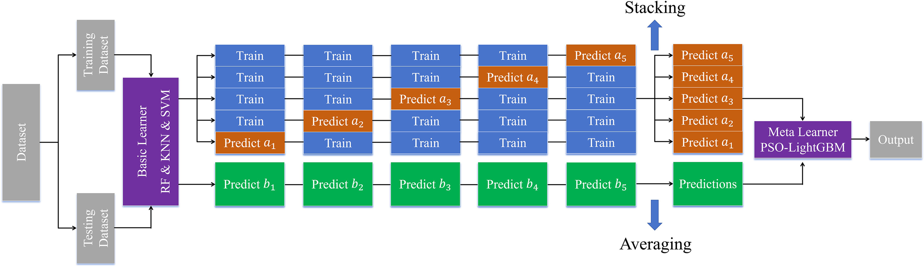 可复用内容:以经典机器学习模型为基学习器,通过交叉验证生成元特征,采用PSO优化轻量级梯度提升模型(如LightGBM)作为元学习器,实现缺陷分类;