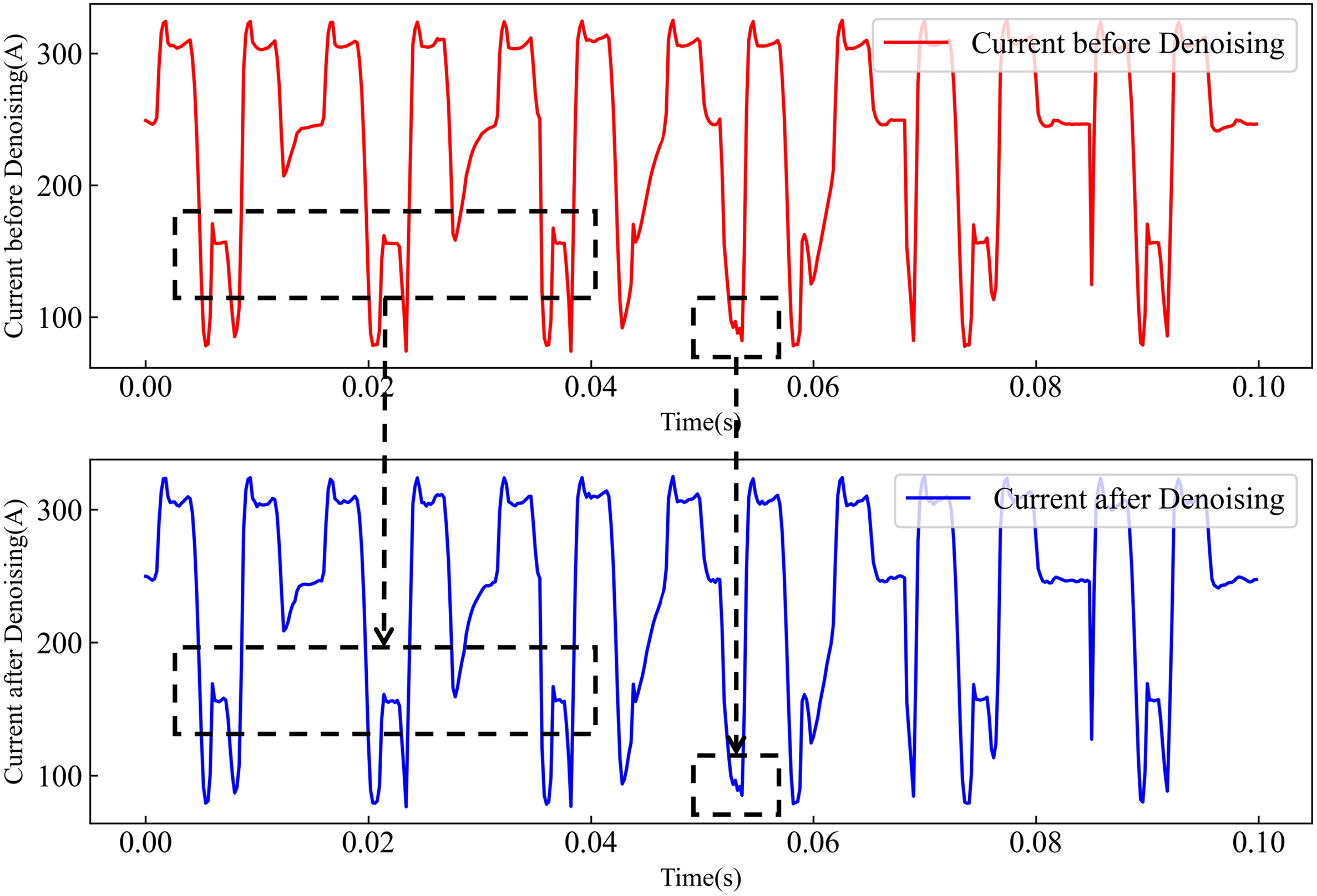 焊接电流:Symlets8小波基去噪(消除高频电弧噪声与电磁干扰)+分帧(500采样点/帧,对应100ms)+汉宁窗加窗(抑制频谱泄漏,窗函数按论文公式(1)设计);