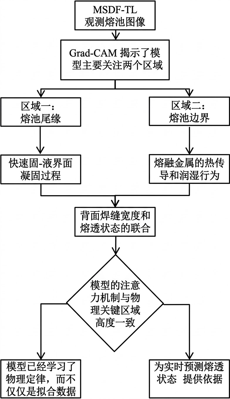 建立了 “深度学习可视化+焊接物理机制” 的分析方法,通过Grad-CAM热力图将模型的黑箱决策过程与焊接的热传导、熔池流动物理机制关联,为工业智能模型的可解释性研究提供了新的分析思路。