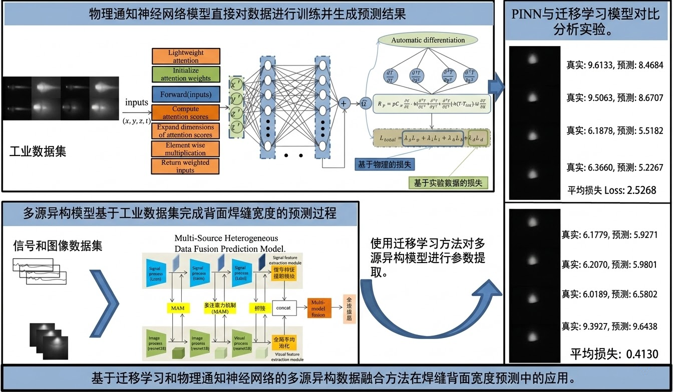 补全了智能焊接领域 “物理约束-迁移学习-多源数据融合” 的一体化框架研究空白,首次将多头交叉注意力融合机制应用于焊接熔池的时空特征融合,为非线性多物理场耦合的制造过程建模提供了新的理论思路;