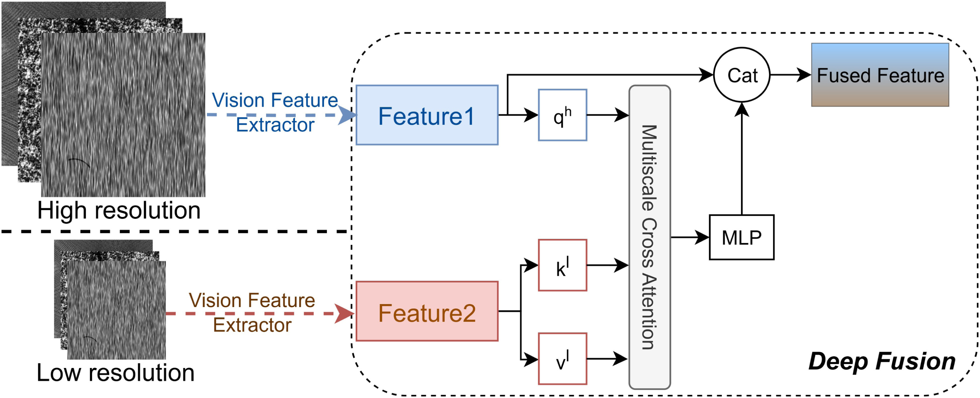 复用方式:以高分辨率图像特征为Q、低分辨率图像特征为K/V,通过跨注意力实现多尺度特征融合,兼顾细节和全局信息;