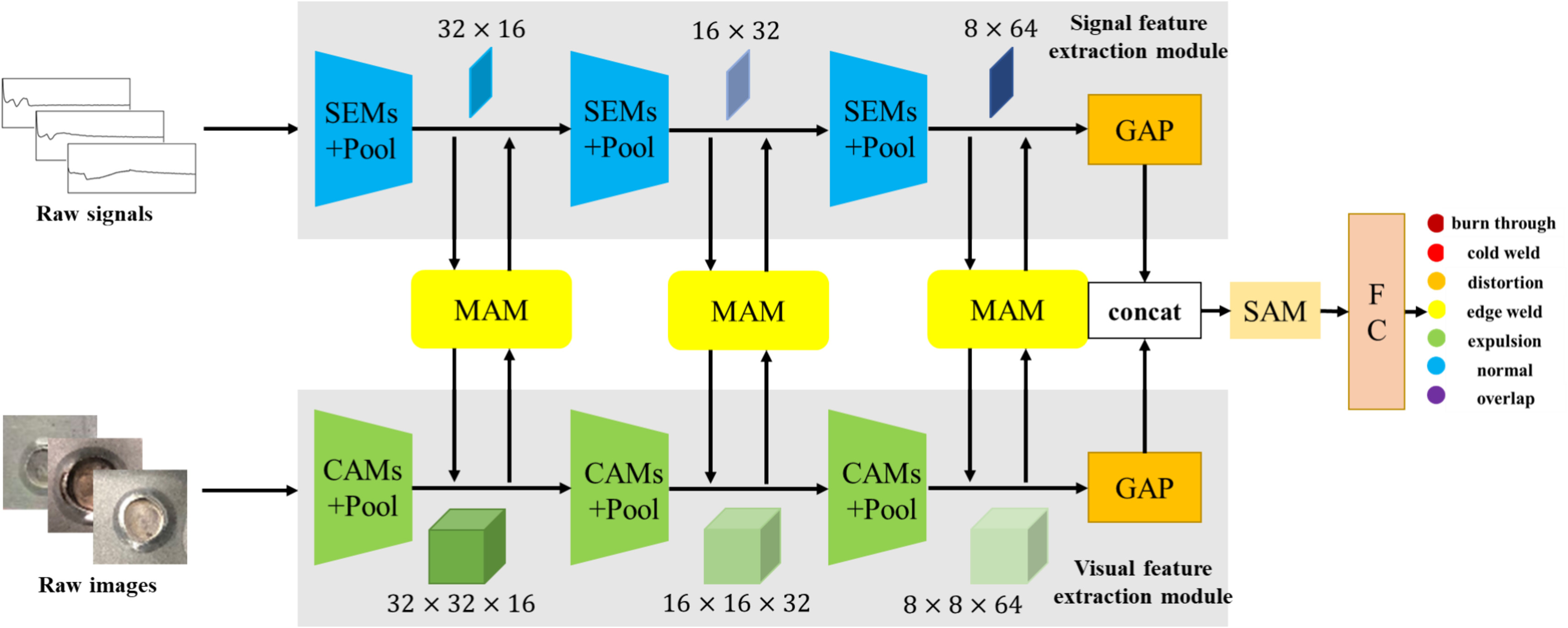 具体问题:MSHIFN为端到端的深度学习框架,融合特征的物理意义不明确,无法解释模型对某一质量类别的判定依据,不利于工业现场的故障溯源与焊接工艺优化;